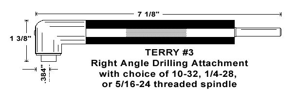 TERRY NO. 3 - Right Angle Drilling Attachment with 1/4"-28 threaded spindle. 1/4" Capacity.